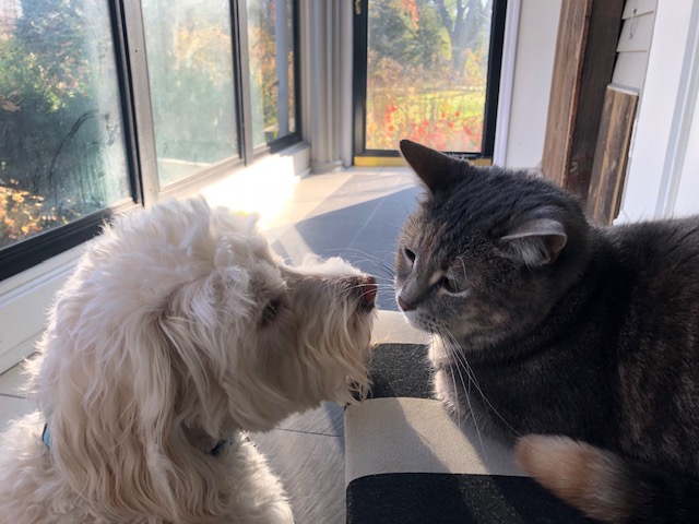 Happiness is music, gardens in bloom and furry friends.